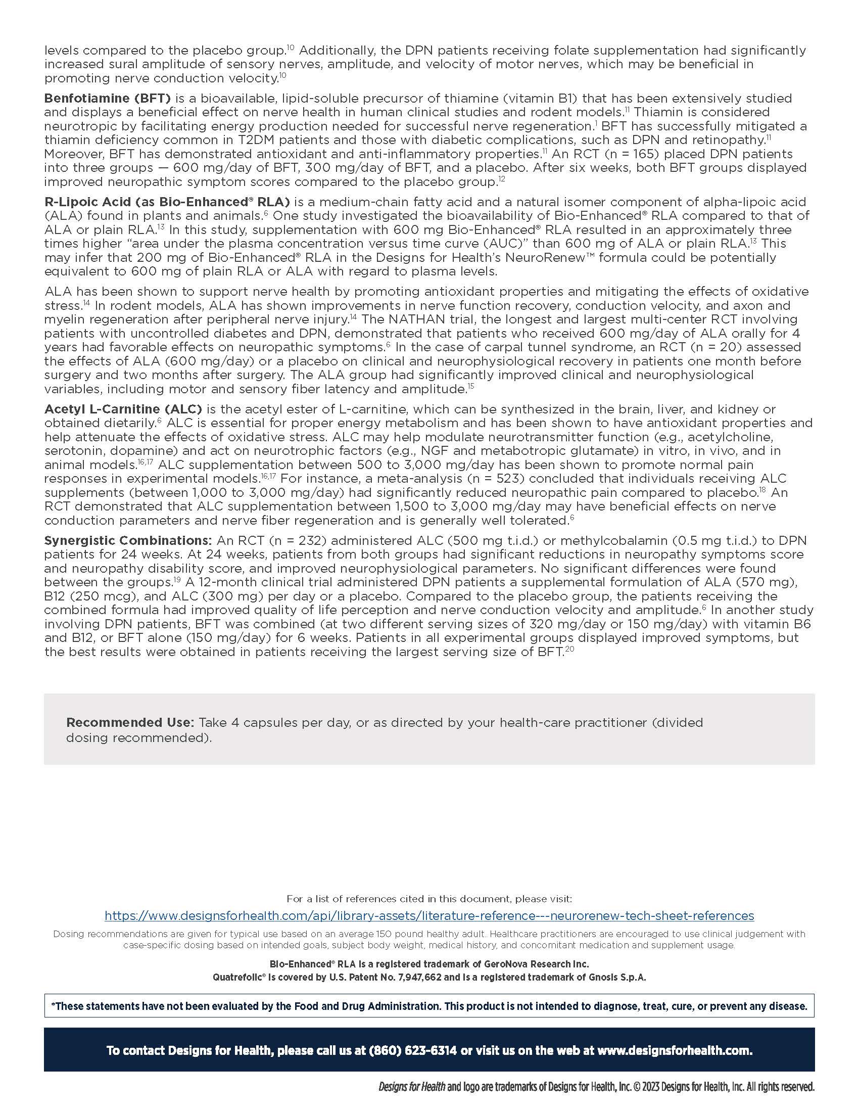 NeuroRenew™ is a synergistic formulation featuring B vitamins, acetyl L‑carnitine, and R‑lipoic acid designed to support healthy nerve structure and function.* NeuroRenew™ may promote nerve regeneration, neurotransmitter function, and healthy pain responses.*